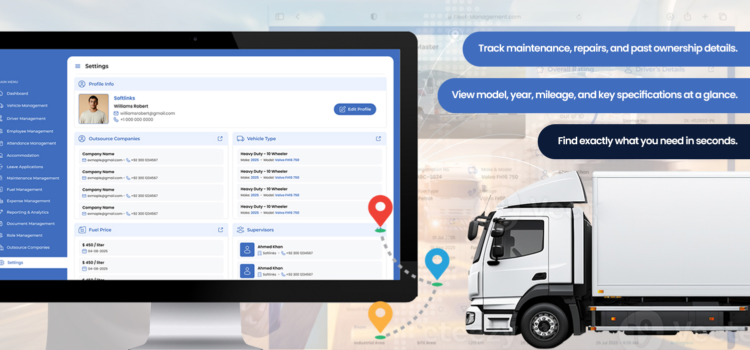 Streamline vehicle operations with real-time tracking, maintenance monitoring, and performance analytics to reduce costs and improve efficiency.